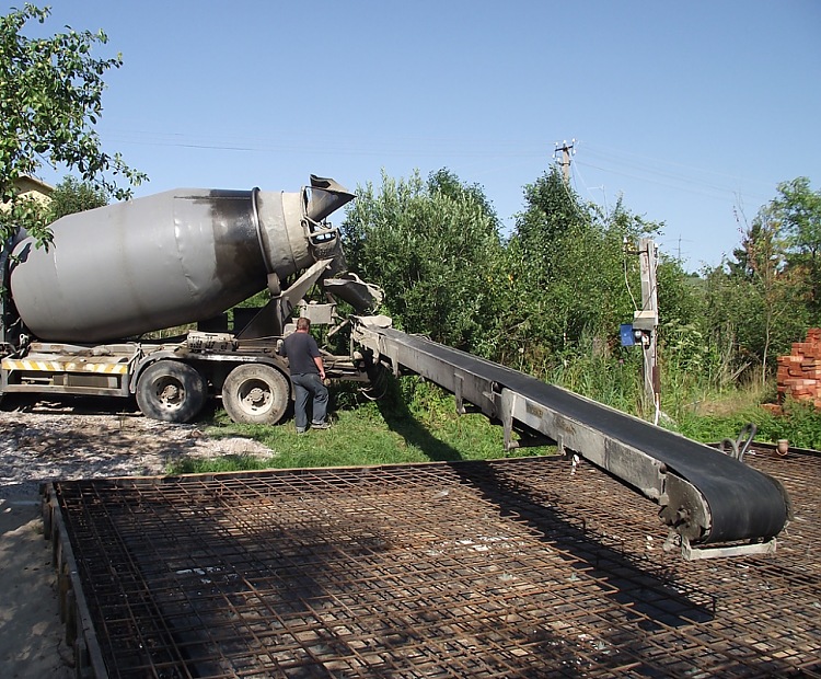 Имеются также специальные ленточные транспортеры, отдельные, либо, что удобнее, приделаные к бетоновозу.