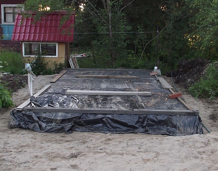 На утрамбованный и тщательно выровненный песок устанавливается опалубка. Она может быть сделана из: